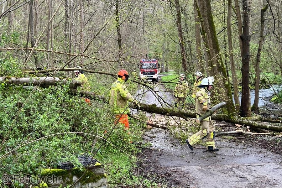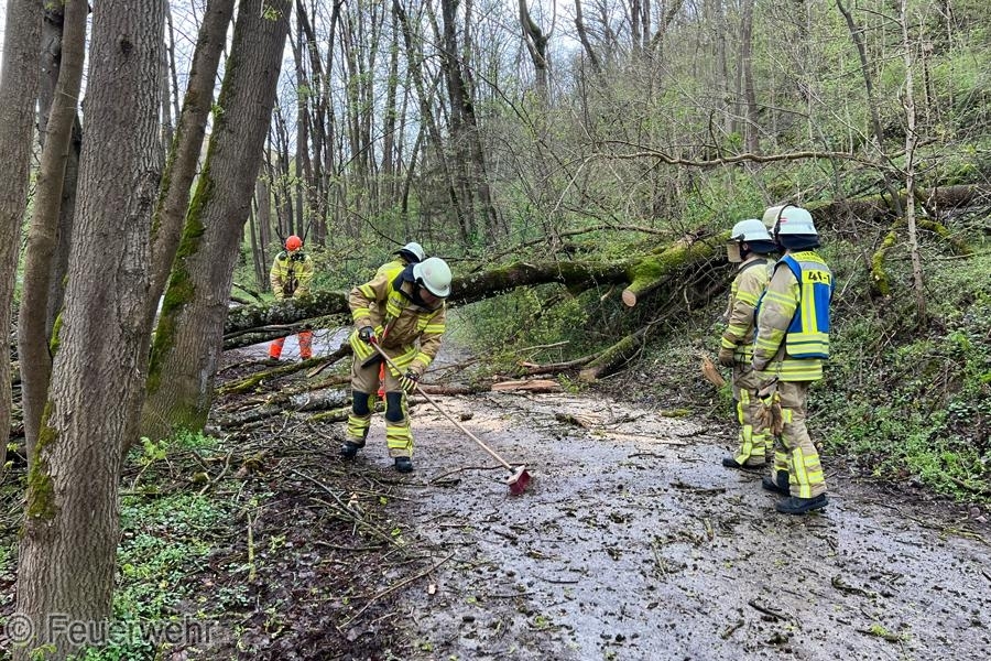 Am Ostermontag wurde die Feuerwehr zu mehreren umgestürzten Bäumen im Bereich der Neumühle alarmiert. Mit der Motorkettensäge wurden die Bäume zersägt und der Weg anschließend geräumt.