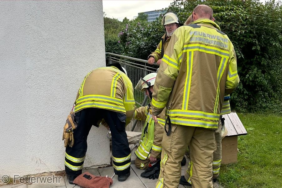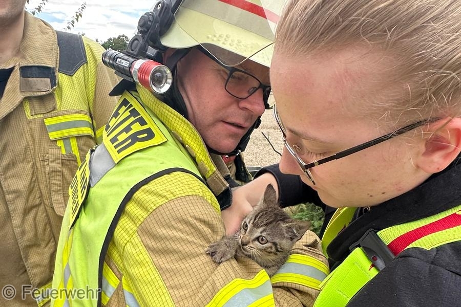 Eine eingeschlossene Katze in einem Abwasserrohr beschäftigte die Feuerwehr am Freitagnachmittag. Das Tier wurde mit einer Feuerwehrleine aus der misslichen Lage befreit.