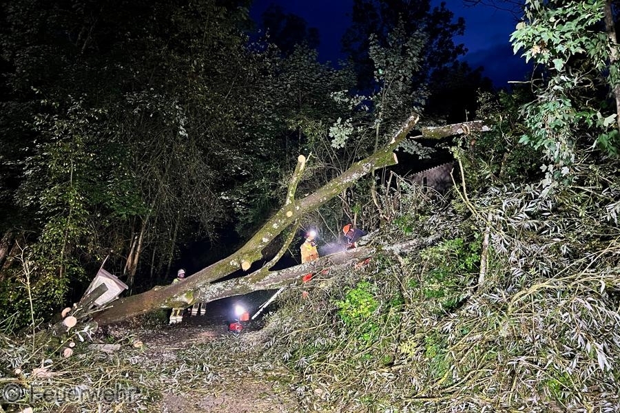 Die Feuerwehr wurde am Freitagabend zu mehreren umgestürzten Bäumen auf den Verbindungsweg Richtung Hemmingen gerufen. Die Bäume wurden mit Kettensägen zerteilt und der Weg wieder passierbar gemacht.