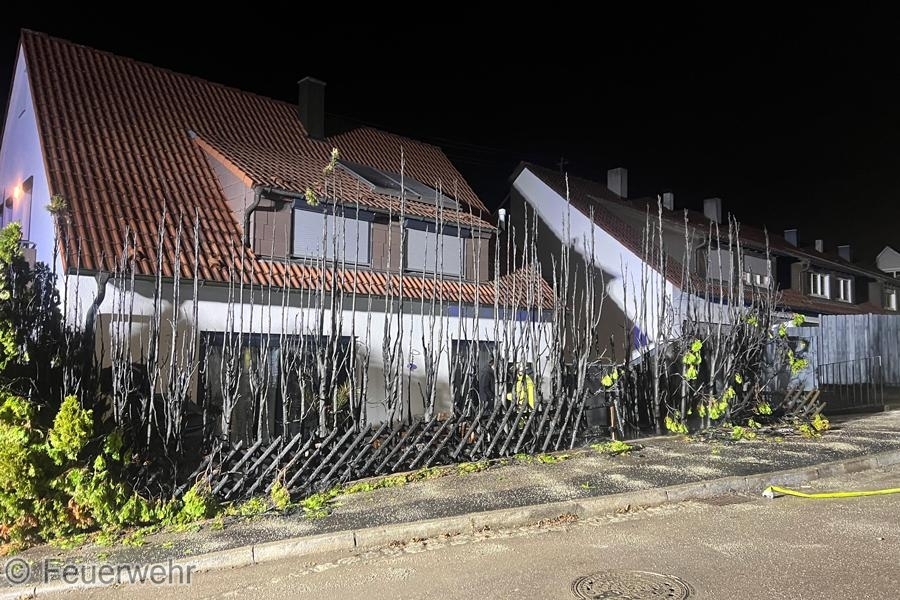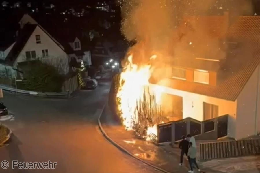Am Silvesterabend wurde die Feuerwehr zu einer brennenden Hecke an einem Gebäude alarmiert. Bereits auf der Anfahrt gingen mehrere Anrufe ein, sodass das Einsatzstichwort durch die Leitstelle erhöht wurde. Beim Eintreffen standen mehrere Meter einer hohen Thuja-Hecke in Flammen. Durch das schnelle Eingreifen der Feuerwehr konnte ein Übergreifen auf das nahestehende Gebäude verhindert werden. Zwei Trupps unter Atemschutz löschten den Brand mit jeweils einem C-Rohr. Anschließend erfolgte die Kontrolle auf Glutnester mit Hilfe der Wärmebildkamera. Ebenfalls an der Einsatzstelle befand sich die Drehleiter der Feuerwehr Markgröningen, welche aber nicht eingesetzt werden musste.