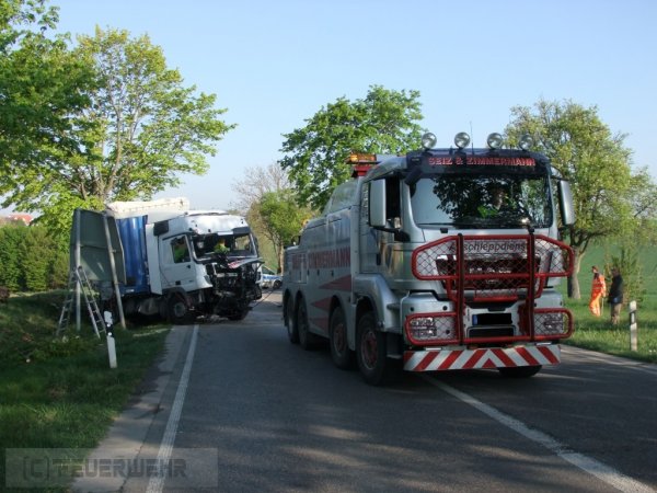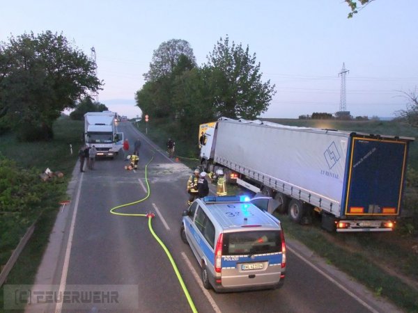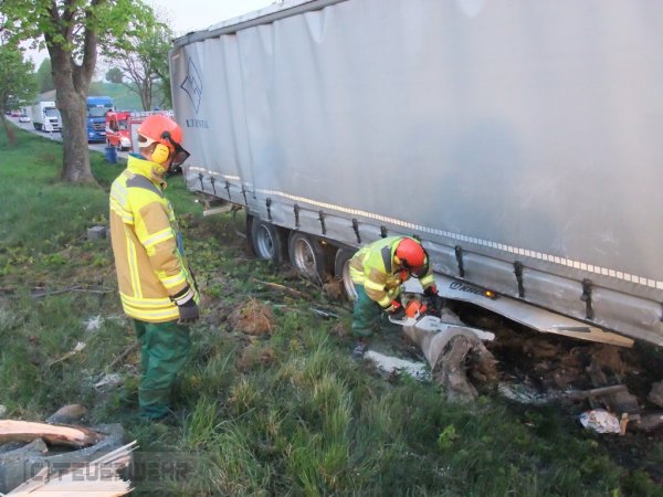 Der Fahrer des LKW blieb unverletzt, das Straßenstück der B10 blieb für mehrere Stunden vollgesperrt.