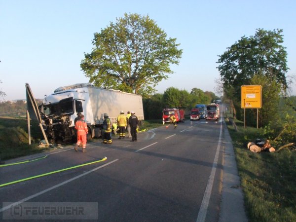 Am frühen Mittwochmorgen kam es um kurz vor 6 Uhr zu einem Verkehrsunfall mit einem LKW, welcher in Richtung Stuttgart auf der B10 unterwegs war. Dieser kam aus bisher noch unbekannten Gründen rechts von der Fahrbahn ab. Dabei entwurzelte er einen Baum, welcher am Fahrbahnrand stand. Das Führerhaus des LKWs, sowie die Dieseltanks wurden dadurch stark beschädigt.