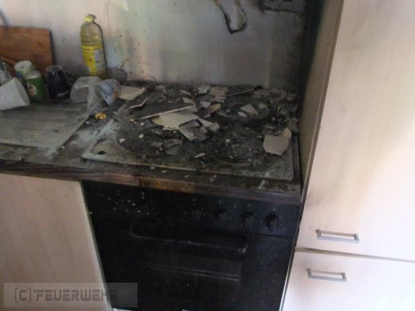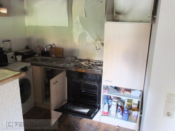 Beim Eintreffen der Feuerwehr war die Wohnung verraucht aber das Feuer in der Küche bereits aus. Der Angriffstrupp wurde mit Atemschutz und einem Kleinlöschgerät zur Erkundung in die betroffene Wohnung geschickt, dort stellte sich herraus, das beinahe die komplette Küche Feuer fing, aufgrund von vergessenem Essen auf dem Herd. Maßnahmen waren, das Entfernen der Dunstabzugshaube sowie das Kontrollieren des betroffenen Bereiches mit Hilfe der Wärmebildkamera. Der Besitzer der Wohnung wurde vorsorglich dem Rettungsdienst übergeben.