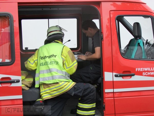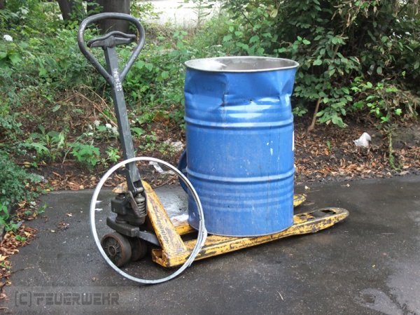 Auf Grund starker Rauchentwicklung eines brennenden Metallfasses mit Schleifrückständen kam es zur Auslösung der Brandmeldeanlage eines auf Sonderabfallbeseitigung spezialisierten Unternehmens. Gemäß der aktuell geltenden Alarm- und Ausrückeordnung (AAO) wurde ebenfalls die Feuerwehr Markgröningen mit der Drehleiter alarmiert. Nach Ersterkundung wurde durch den Angriffstrupp das Fass nach außen verbracht. Unter Kontrolle mit der Wärmebildkamera wurde das Fass von außen mit Wasser gekühlt. Nach Rücksprache mit dem Betreiber wurden die Schleifrückstände in ein größeres Gebinde umgefüllt und die noch glimmenden Glutnester mittels Netzmittel abgelöscht.