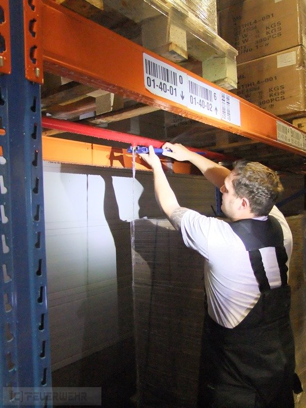 In den Morgenstunden wurde die Feuerwehr Schwieberdingen zu einem Brandmelderalarm in die Markgröninger Straße alarmiert. Bei Verladearbeiten in einem Hochregal wurde die eingebaute Sprinkleranlage beschädigt. Vor Ort wurde der abgerissene Sprinklerkopf abgedichtet und das ausgelaufene Wasser mittels Wassersaugern aufgenommen.
