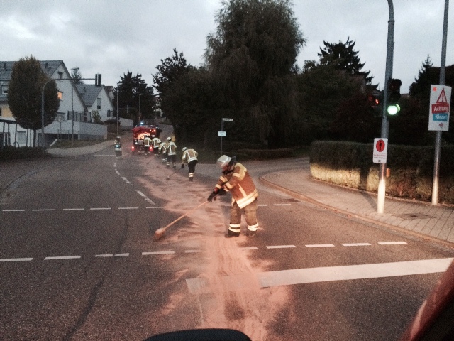 Die Feuerwehr Schwieberdingen streute am Samstagmorgen eine Kraftstoffspur ab, welche sich auf der Hemminger Straße entlang zog.