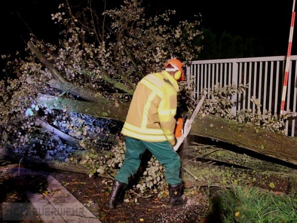 Während der Sturm in den Abendstunden über den Landkreis hinwegzog, kam es auch in Schwieberdingen zu kleinen Unwettereinsätzen. Alarmiert wurde die Feuerwehr zu einem umgestürtzten Baum in den Gröninger Weg. Während der Baum durch Kräfte des Löschgruppenfahrzeuges beseitigt wurde, wurden bei Erkundungsfahrten Mülleimer und Bauzäune im Ortsgebiet wieder aufgestellt.
