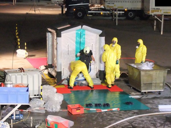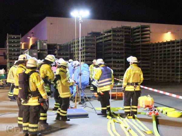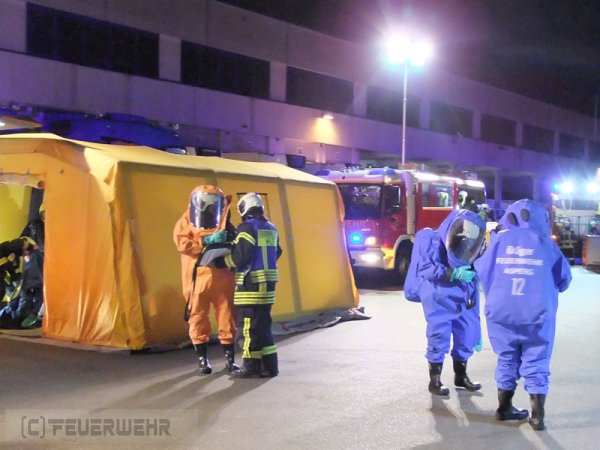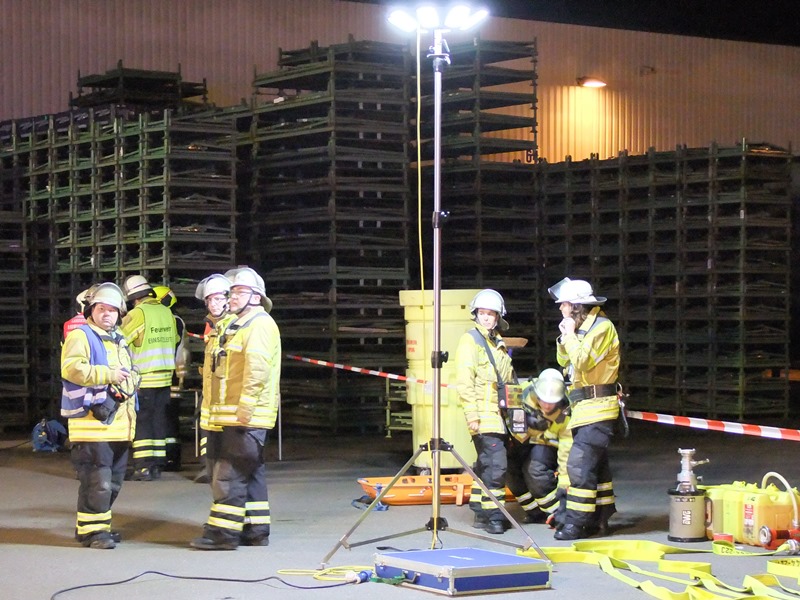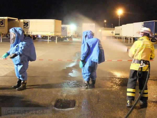 In der Nacht von Freitag auf Samstag wurde die Feuerwehr Schwieberdingen zu einem Gefahrguteinsatz mit dem Stichwort "G2 Gefahrgut 50 Liter/kg" in ein örtliches Speditionsunternehmen alarmiert. Mitarbeiter klagten über einen stechenden Geruch und den Austrit einer unbekannten Flüssigkeit auf einer Wechselbrücke. Gemäß der Alarm- und Ausrückeordnung wurde ebenfalls der Gefahrgutzug der Feuerwehr Asperg alarmiert. Nach der Erkundung und Sichtung der Ladepapiere wurde auf das Einsatzstichwort "G4 Gefahrgut 2000 Liter/kg" erhöht. Zusätzlich wurden damit für die Feuerwehr Asperg Vollalarm gegeben, der Dekonzug aus Ludwigsburg, Kreisbrandmeister und der Fachberater Chemie alarmiert. Ebenfalls wurde die Feuerwehr des Hardt- und Schönbühlhof zur Sicherstellugn des Grundschutzes in der Gemeinde alarmiert und besetzte während des Einsatzes die Feuerwache in Schwieberdingen. Bei dem ausgetretenem Medium handelte es sich um Schwefelsäure mit einer Konzentration von 95%, über 100 Einsatzkräfte waren bis in die Morgenstunden damit beschäftig die Wechselbrücke zu entladen und die Ladung zu sichern. Unter CSA wurde im laufe der Nacht die gesamte Wechselbrücke entladen und das Medium fachgerecht gesichert.