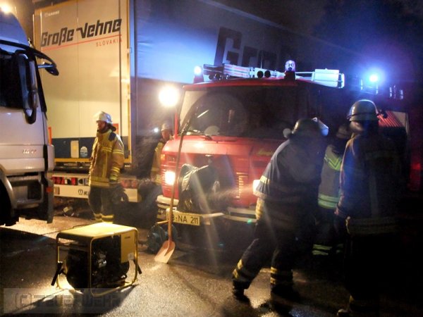 Durch die ILS Ludwigsburg wurde die Feuerwehr Schwieberdingen in den Abendstunden zum zweiten Einsatz alarmiert. Ein aufmerksamer LKW-Kraftfahrer meldete ausgelaufenen Kraftstoff im Laiblinger Weg. Vor Ort stellte sich heraus, dass der auslaufende Kraftstoff die Folge eines Dieseldiebstahls war. Noch vor Ort konnten durch die Polizei zwei Kanister sichergestellt werden. Zur Unterstützung und Beweisaufnahme durch die Polizei wurde die Einsatzstelle ausgeleuchtet und der Kraftstoff im Bereich des Tanks abgebunden.