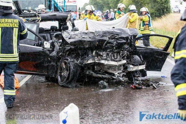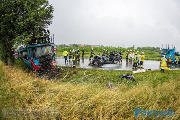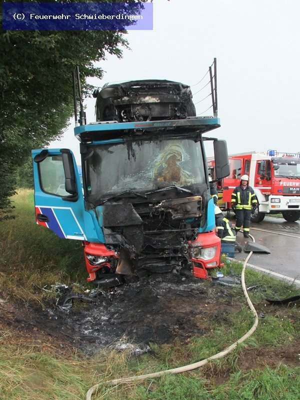 Alarmiert wurde die Feuerwehr Schwieberdingen zu einem Verkehrsunfall auf der B10 auf Höhe des Hardt- und Schönbühlhofs. Auf Grund der anfänglich unklaren Örtlichkeit auf der B10 wurde ebenfalls die Feuerwehr Vaihingen/Enz alarmiert. Vor Ort mussten die ersten Einsatzkräfte sowohl den brennenden PKW als auch den brennenden LKW ablöschen. Noch während der laufenden Löscharbeiten wurde mit der Rettung der verunfallten Person im PKW begonnen. Leider verstarb die Person noch am Unfallort. Weitere am Unfall beteiligten Personen wurden bis zum Eintreffen des Rettungsdienstes erstversorgt und betreut. Im Anschluss an die Maßnahmen der Feuerwehr wurde die Einsatzstelle zur weiteren Ermittlung an die Polizei übergeben.