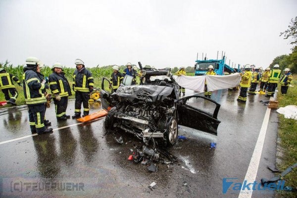 Ludwigsburg (ots) - Ein Todesopfer sowie zwei Leichtverletzte forderte am Dienstag gegen 11:30 Uhr ein schwerer Verkehrsunfall auf der B 10 bei Hardt- und Schönbühlhof. Den bisherigen polizeilichen Ermittlungen zufolge war eine 58-jährige Autofahrerin mit ihrem Mercedes in Richtung Vaihingen/Enz unterwegs und geriet dabei aus noch ungeklärter Ursache auf die linke Fahrbahnseite. Nachdem sie dort zunächst den Fiat 500 einer 21-jährigen Frau gestreift hatte, stieß sie frontal mit einem entgegenkommenden Autotransporter zusammen, der von einem 45-Jährigen gefahren wurde. Der Mercedes und das Führerhaus des Lkw fingen daraufhin Feuer. Während sich der Lkw-Fahrer befreien konnte und wie die 21-Jährige nur leichte Verletzungen erlitt, stand der Mercedes sofort im Vollbrand und die 58-Jährige verstarb in ihrem Auto. Die B 10 ist im Bereich der Unfallstelle für die Unfallaufnahme und die Bergungsarbeiten derzeit noch in beiden Richtungen gesperrt. Der Verkehr wird örtlich umgeleitet.