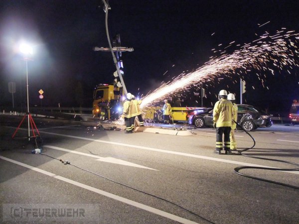 Die Feuerwehr nahm auslaufende Betriebsstoffe auf, stellte den Brandschutz sicher und unterstützte die Polizei und Straßenmeisterei.