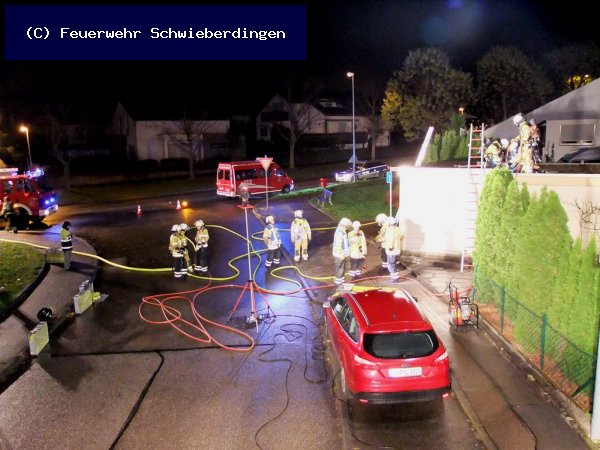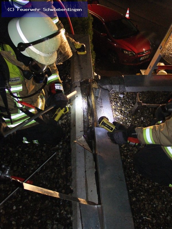 Ein Sachschaden von etwa 15.000 Euro entstand in der Nacht zum Sonntag im Kolberger Weg in Schwieberdingen durch einen Schwelbrand. Am Samstagmittag war mit einem Bunsenbrenner Unkraut im Bereich von privaten Garagen und einem angrenzenden Trafohauses eines Verteilernetzbetreibers entfernt worden. Vermutlich entwickelte sich hierbei unbemerkt ein Dehnfugenbrand im Bereich der Gebäude. Die Freiwillige Feuerwehr Schwieberdingen rückte gegen 03.10 Uhr mit 35 Wehrleuten und drei Fahrzeugen aus. Während der Löscharbeiten musste eine Metallverkleidung der Dächer der Garagen und des Trafohauses entfernt werden. Gegen 05.00 Uhr war der Brand vollständig gelöscht.