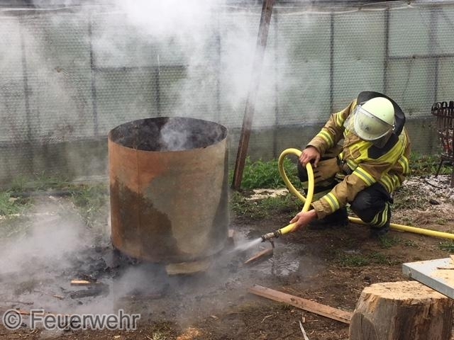 Ein gemeldeter Gewächshausbrand entpuppte sich als Feuer in einer Tonne.