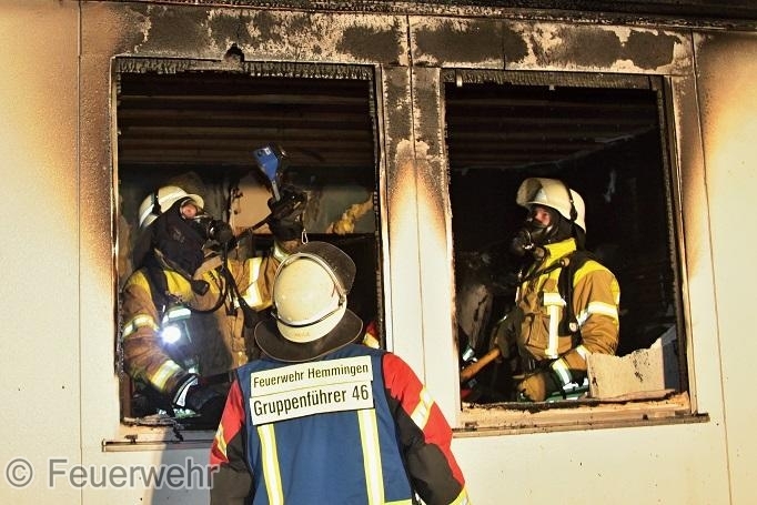 Am Mittwochabend, gegen 22.25 Uhr, brach in der Asylunterkunft in der Patronatstraße in Hemmingen aus noch unbekannter Ursache ein Feuer aus. Die Freiwilligen Feuerwehren Hemmingen und Schwieberdingen rückten, nachdem ein Bewohner die Polizei alarmiert hatte, mit insgesamt 22 Einsatzkräften aus. Der Brand, der in einem der Zimmer entstanden war, konnte zügig gelöscht werden. Im Gebäude befanden sich zum Zeitpunkt des Brandausbruchs acht Personen. Sie konnten die Unterkunft, teilweise auch über die Fenster, unverletzt verlassen. Der entstandene Sachschaden wurde auf rund 70.000 Euro geschätzt. Derzeit ist die Unterkunft nicht bewohnbar. Die Bewohner wurden in anderen Flüchtlingsheimen untergebracht. Hinweise auf einen fremdenfeindlichen Hintergrund gibt es keine. Die Ermittlungen dauern an.