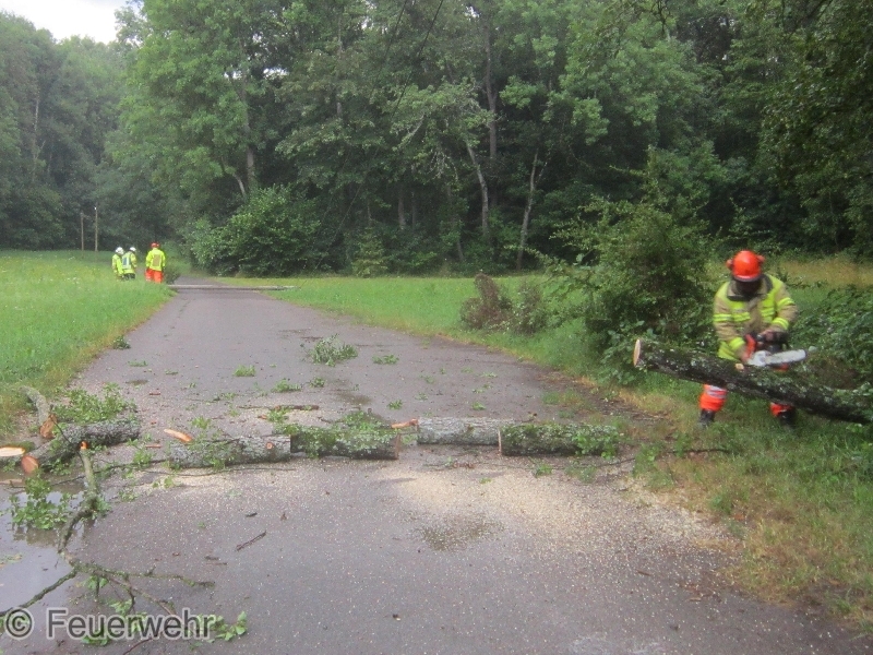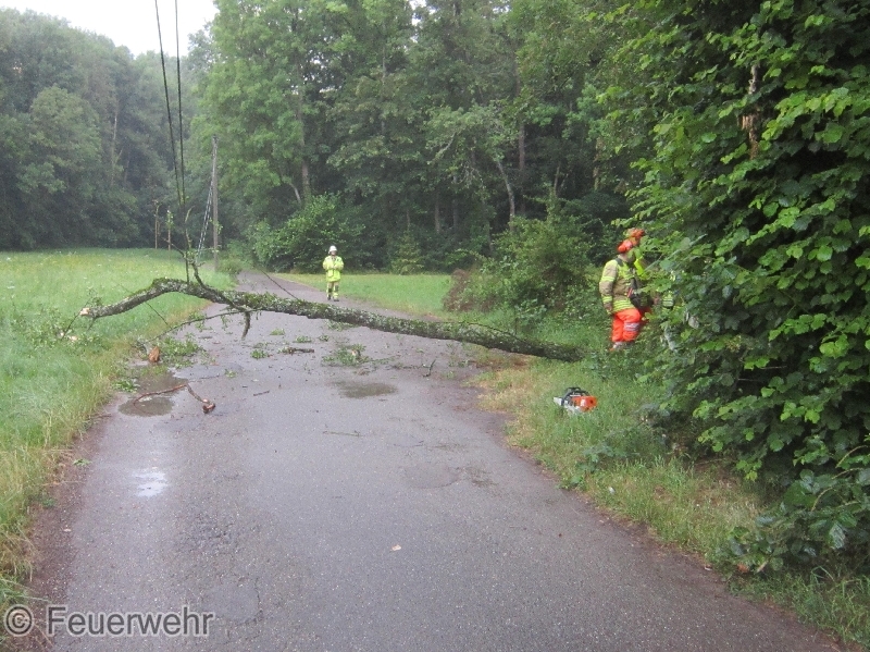 Ein umgefallener Baum blockierte die Fahrbahn entlang der Glems Richtung Neumühle. Der Baum wurden zersägt und die Straße frei geräumt.