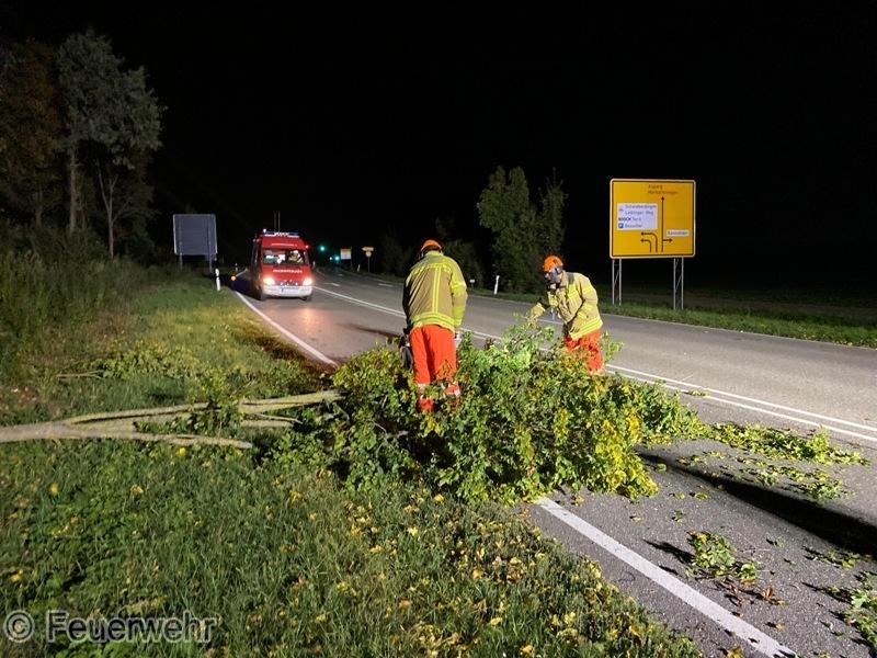 Nach starken Sturmböen stürzte ein Baum auf die L1141.