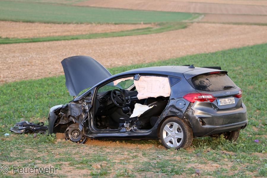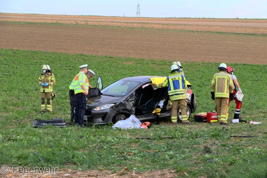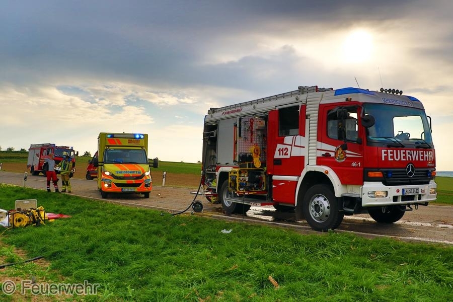 Am späten Mittwochnachmittag befuhr gegen 17:05 Uhr der 25-jährige Fahrer eines Pkw Ford Fiesta von der B10 kommend die Landesstraße L1141 in Fahrtrichtung Markgröningen. Kurz vor der Kreuzung mit der Landesstraße L1140 kam er mit seinem Fahrzeug nach links auf die Gegenfahrbahn. Der 50-jährige Fahrer eines entgegenkommenden Sattelzuges Volvo konnte noch nach rechts in den Grünstreifen ausweichen und so einen Frontalzusammenstoß verhindern. Der Fiesta kollidierte seitlich mit dem entgegenkommenden Sattelzug, wurde nach rechts abgewiesen und kam in einem Acker ca. 10 Meter neben der Fahrbahn zum Stehen. Die Türen am Fiesta ließen sich nicht mehr öffnen, so dass der 25-Jährige durch die Feuerwehr aus seinem Fahrzeug geborgen und in ein Krankenhaus gebracht wurde. Ersten Ermittlungen zufolge dürfte eine medizinische Ursache der Auslöser des Verkehrsunfalles gewesen sein. Der 50-jährige Sattelzugfahrer blieb bei dem Verkehrsunfall unverletzt. Bei dem Verkehrsunfall entstand ein Gesamtsachschaden in Höhe von ca. 30.000.-Euro. Der Fiesta war nicht mehr fahrbereit und musste abgeschleppt werden. Die Landesstraße L1141 musste für die Dauer der Unfallaufnahme bis gegen 19:50 Uhr voll gesperrt werden. Die Feuerwehren Schwieberdingen und Markgröningen waren mit drei Fahrzeugen und 27 Mann im Einsatz.