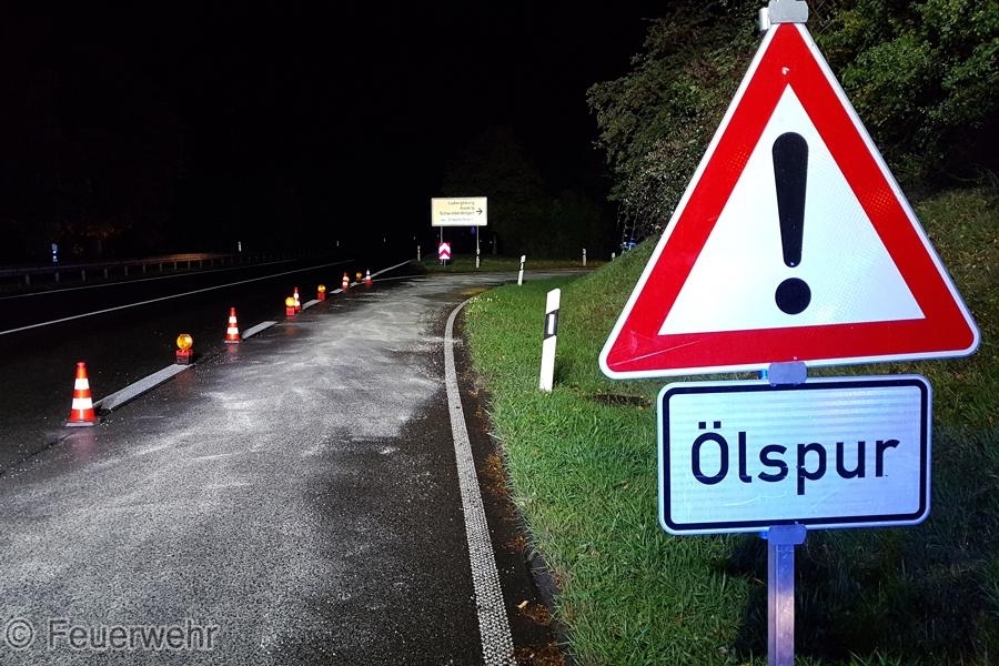 Zu einer Dieselspur im Abfahrtbereich der B10 wurde die Feuerwehr in der Nacht zu Samstag alarmiert. Diese wurde mit Ölbindemittel abgestreut und Warnschilder aufgestellt.