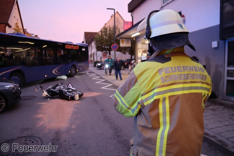 Zu einem Verkehrsunfall zwischen einem PKW und einem Krad wurde die Feuerwehr in den Nachmittagsstunden alarmiert. Vor Ort wurden die auslaufenden Kraftstoffe mit Bindemittel aufgenommen.