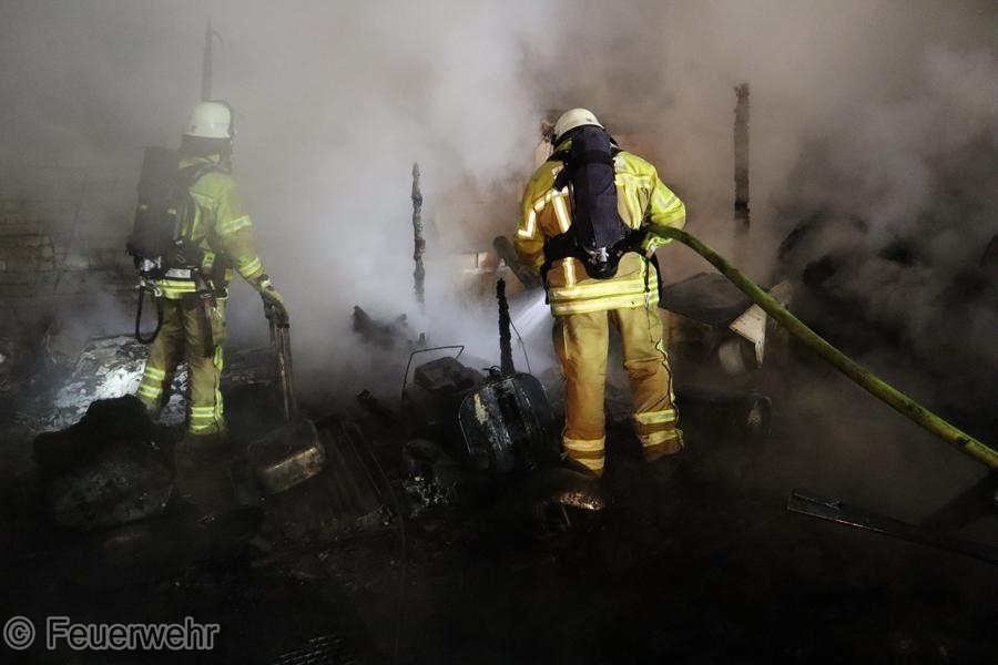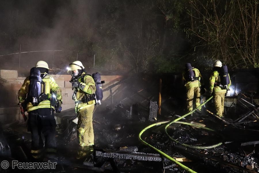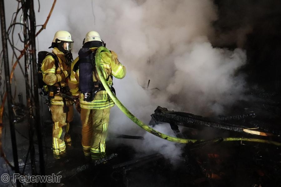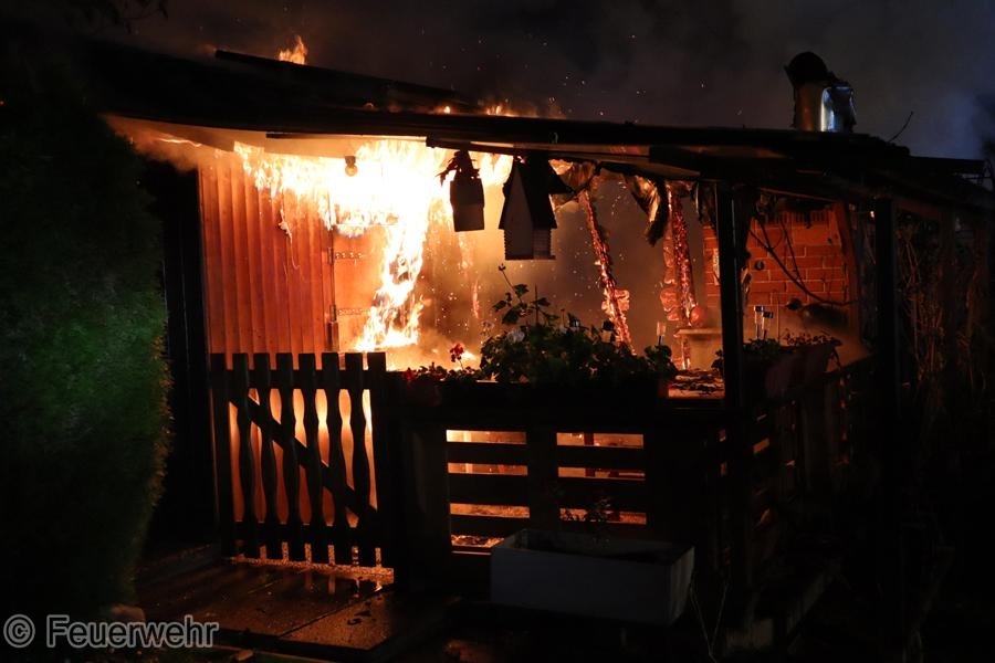 Anwohner aus einem benachbarten Wohngebiet meldeten über Notruf 112 einen Feuerschein und starke Rauchentwicklung aus dem Bereich Kleingartenanlage Frauenwiesen. Beim Eintreffen der Feuerwehr standen zwei Gartenhäuser bereits im Vollbrand. Das Feuer war im Begriff auf ein weiteres Gartenhaus überzugreifen. Umgehend wurde ein Löschangriff mit mehreren Rohren vorgenommen. Im Verlauf des Einsatzes wurden zudem mehrere Gasflaschen durch die Feuerwehr gesichert. Die Löschwasserversorgung erfolgte über die naheliegende Glems. Bei den anschließenden Nachlöscharbeiten wurden weitere Glutnester mit der Wärmbildkamera ausfindig gemacht und abgelöscht. An der Einsatzstelle befanden sich zudem die Polizei, ein Rettungswagen sowie die Drehleiter aus Markgröningen, welche aber nicht zum Einsatz kam.