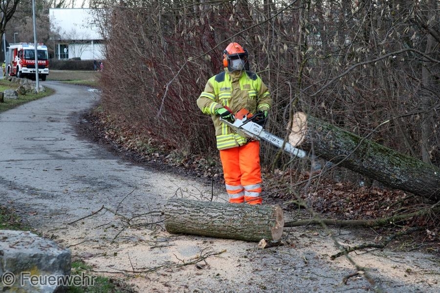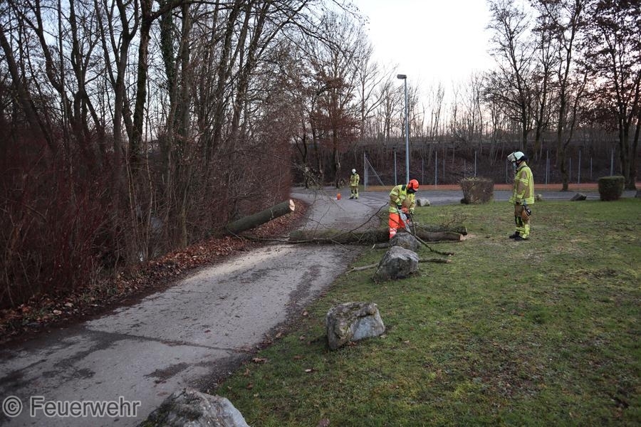 Ein Baum am Glemsufer war quer über den Herrenwiesenweg gefallen und blockierte die Fahrbahn in kompletter Breite. Der Baum wurde mit der Motorkettensäge zerteilt, die Fahrbahn wurde gereinigt und anschließend wieder freigegeben.
