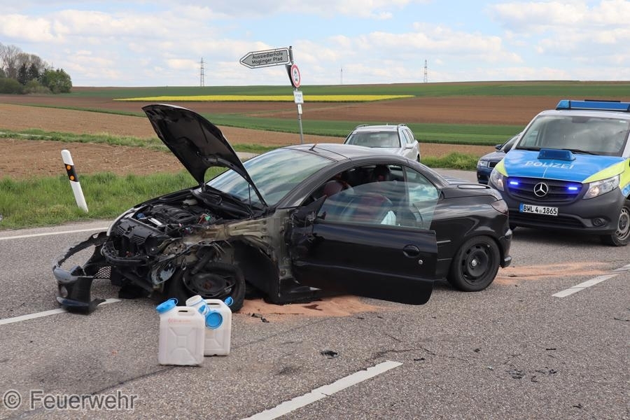 Zu einem Verkehrsunfall zwischen zwei Pkw und mit Personenschaden wurde die Feuerwehr am Montagnachmittag alarmiert. Die Einsatzstelle wurde abgesichert und für die Verletzten eine medizinische Erstversorgung eingeleitet. Außerdem wurde der Brandschutz sichergestellt sowie ausgelaufene Betriebsmittel abgebunden.