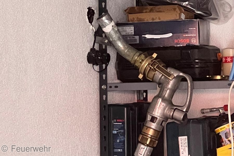 In einer Garage eines Einfamilienhauses kam es beim Betanken mit Heizöl zum Abriss des Tankfüllstutzens. Dadurch lief eine größere Menge Heizöl unkontrolliert in die Garage. Durch die Feuerwehr wurde der Brandschutz sichergestellt und das ausgelaufene Heizöl mit Bindemittel abgebunden und aufgenommen.